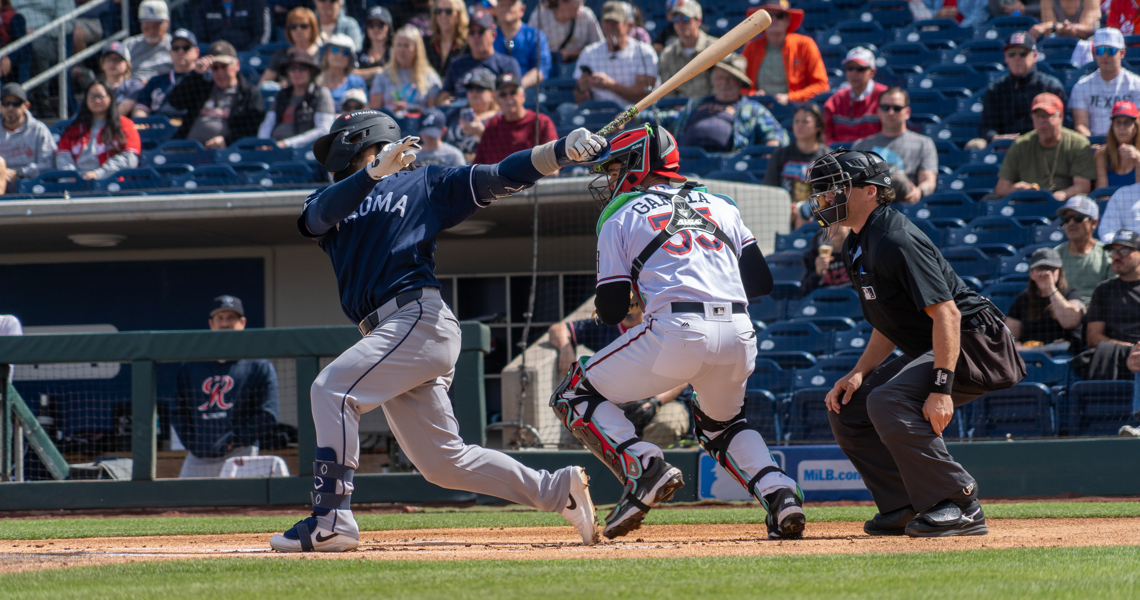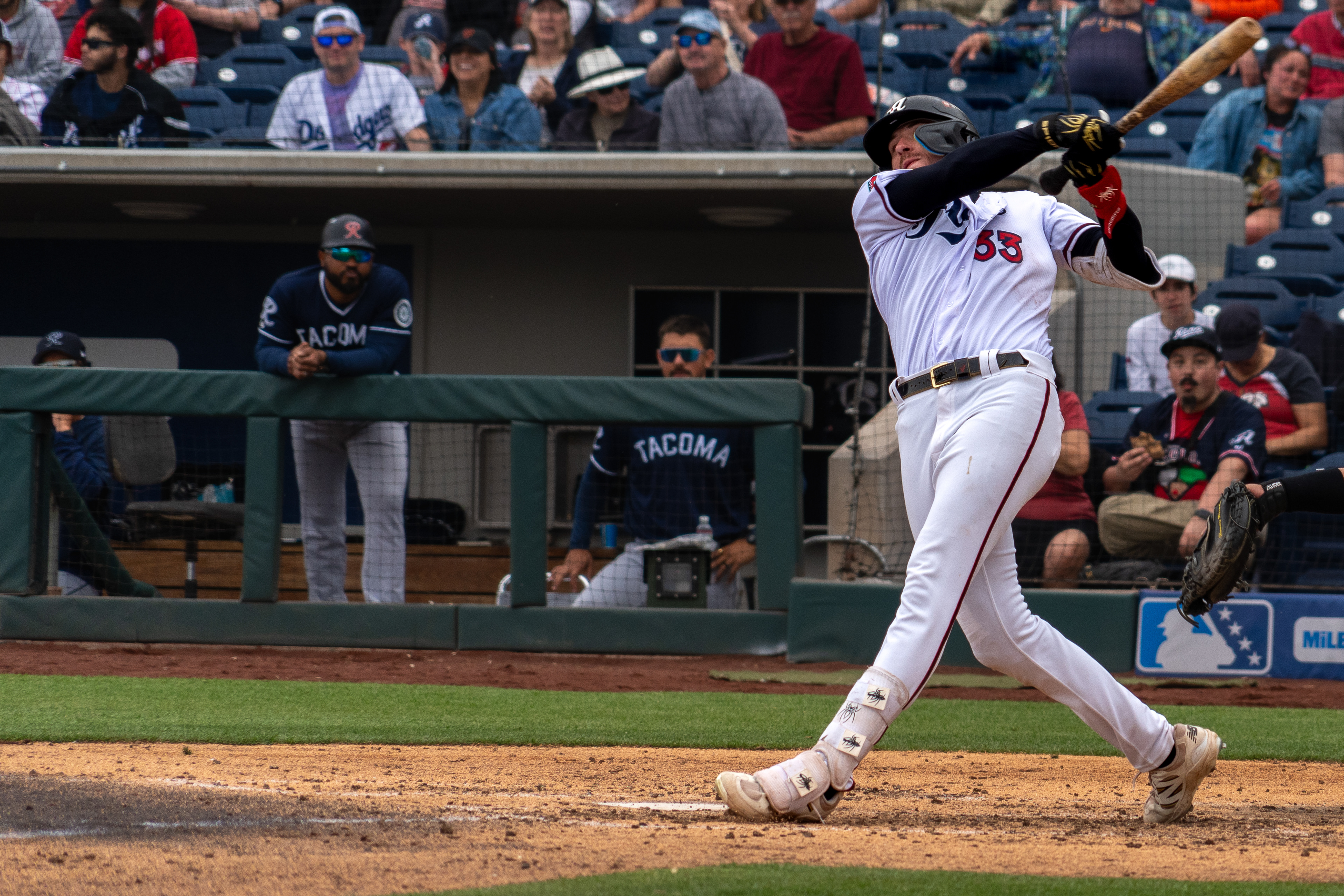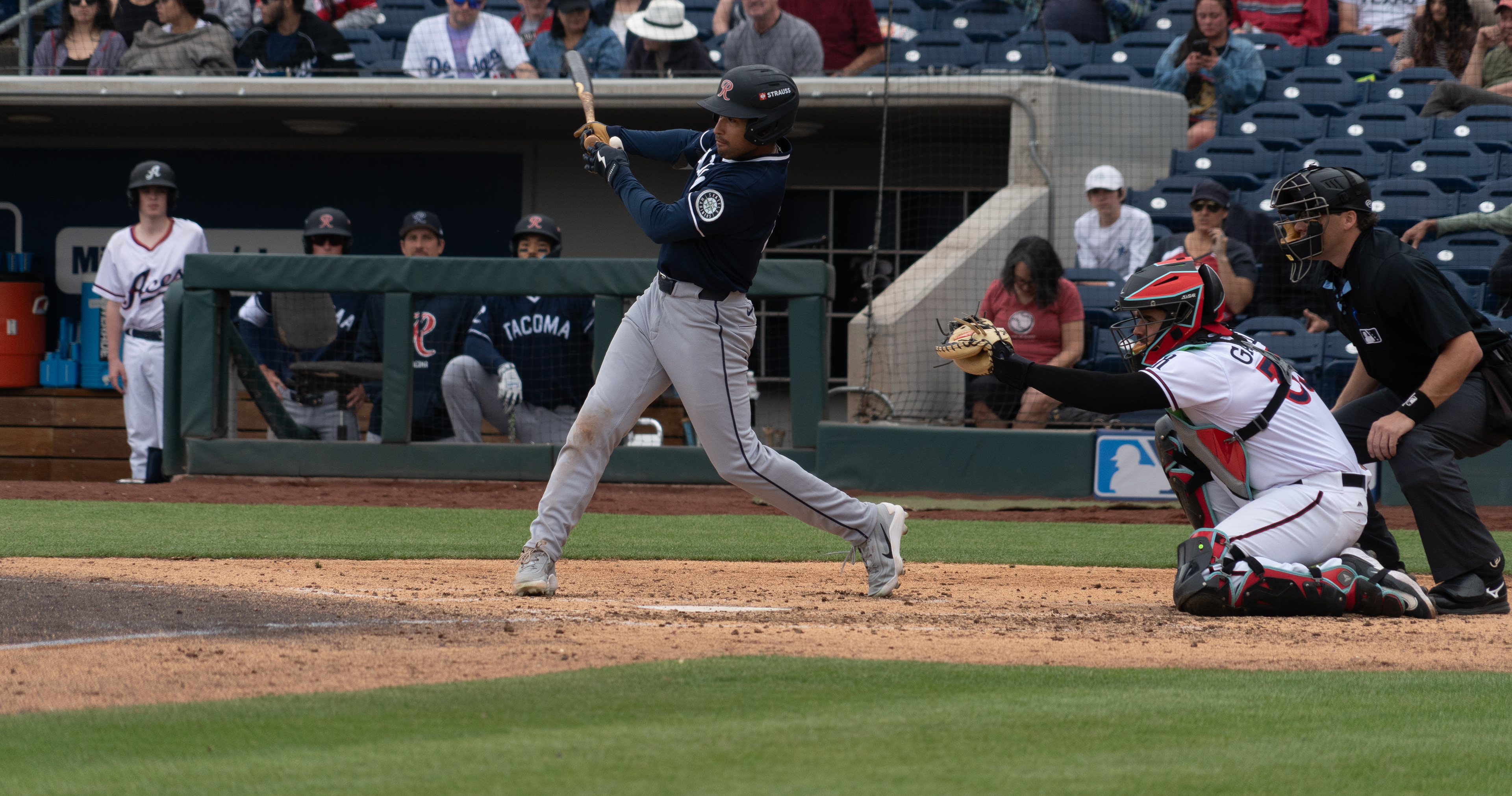 The Tacoma Rainiers take the win 7–6 against the Reno Aces on March 27, 2026, during Opening Day at Greater Nevada Field in Reno.