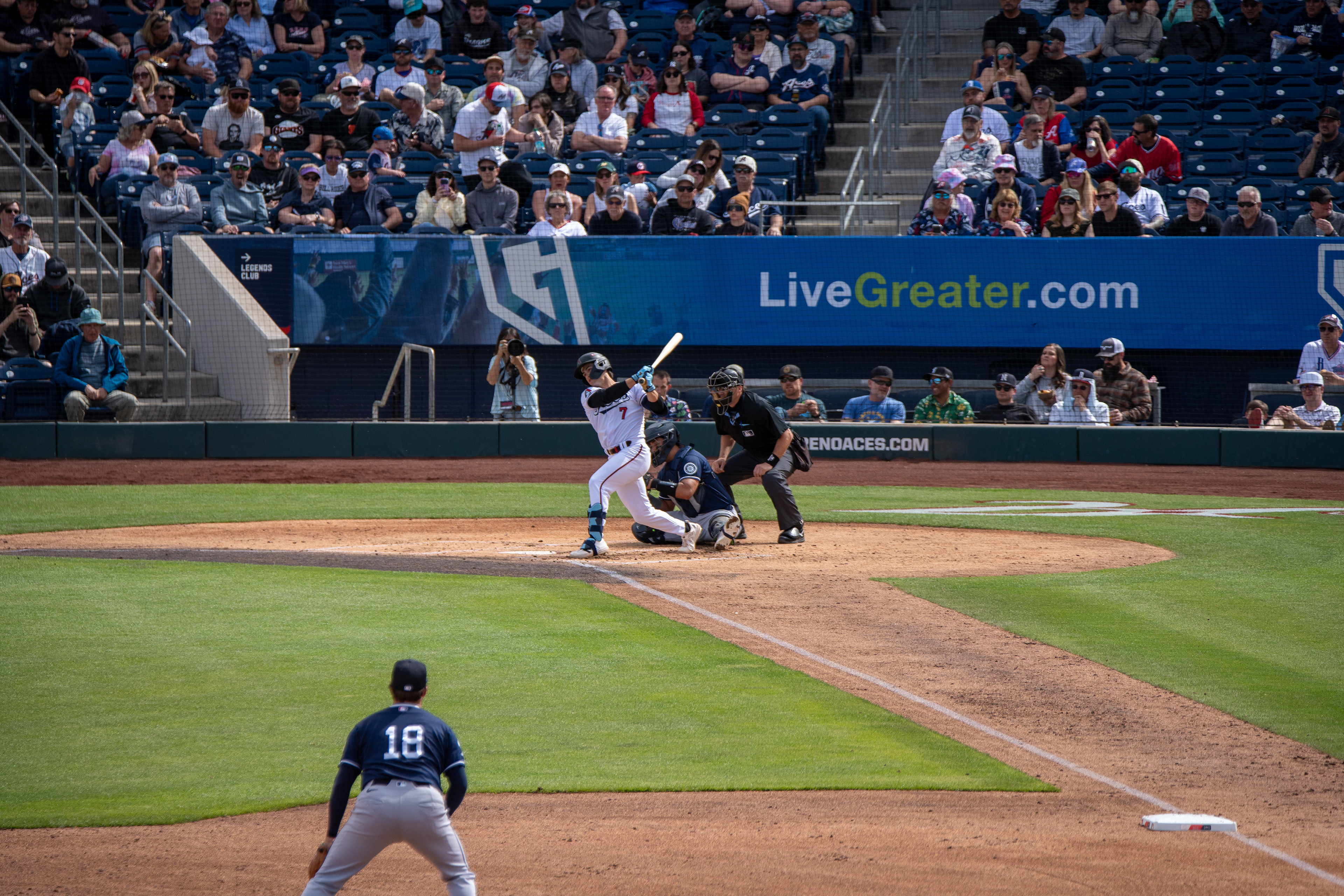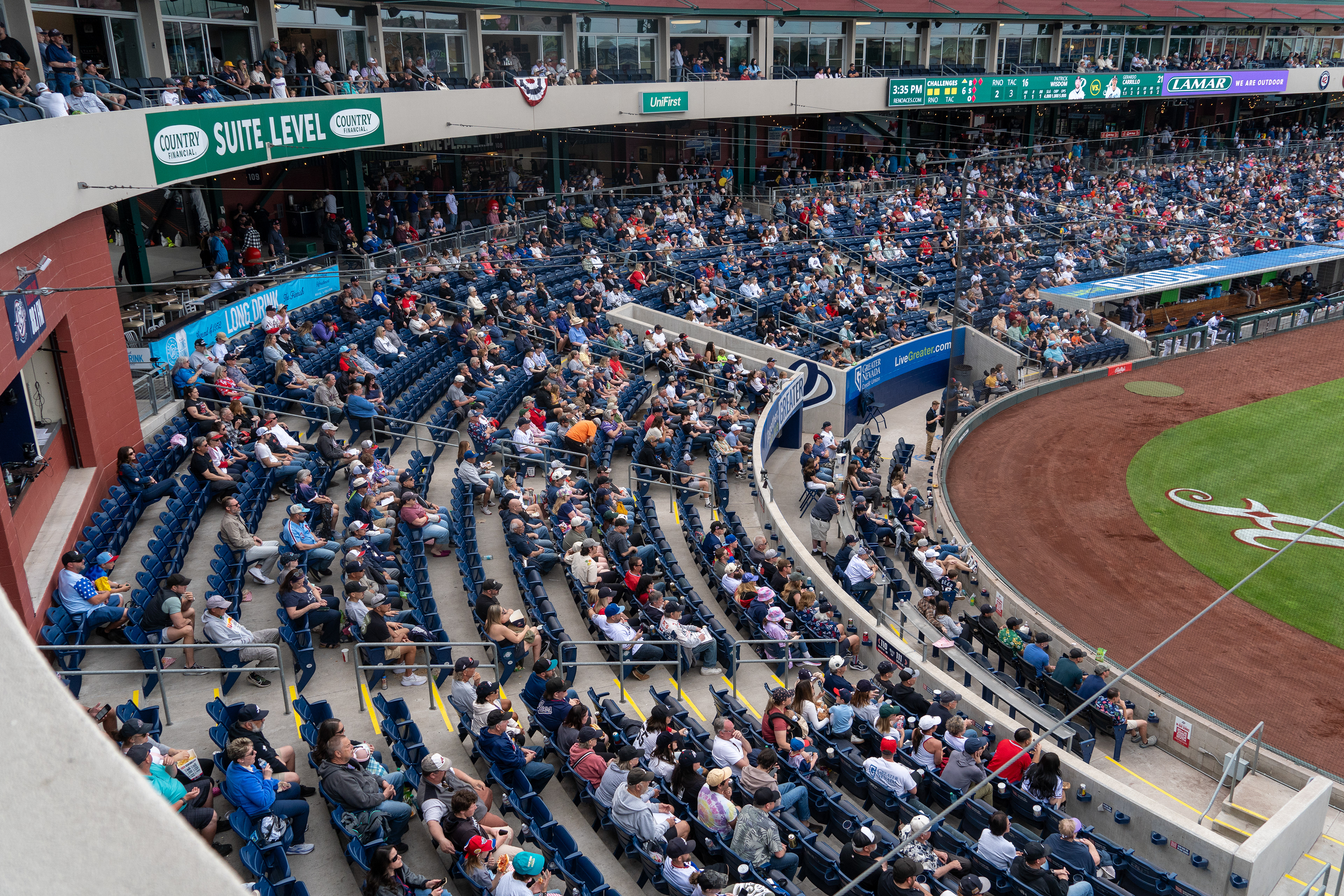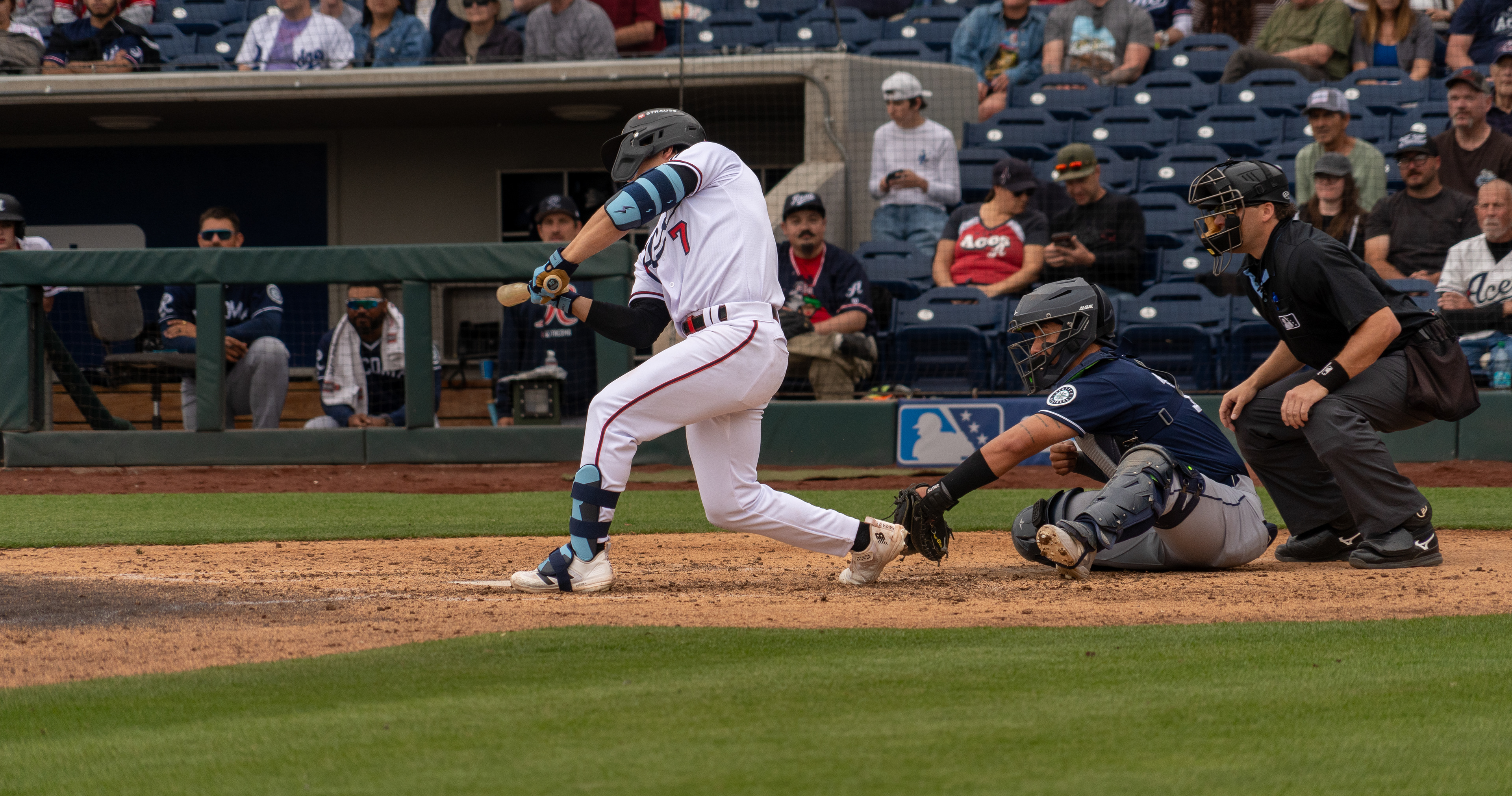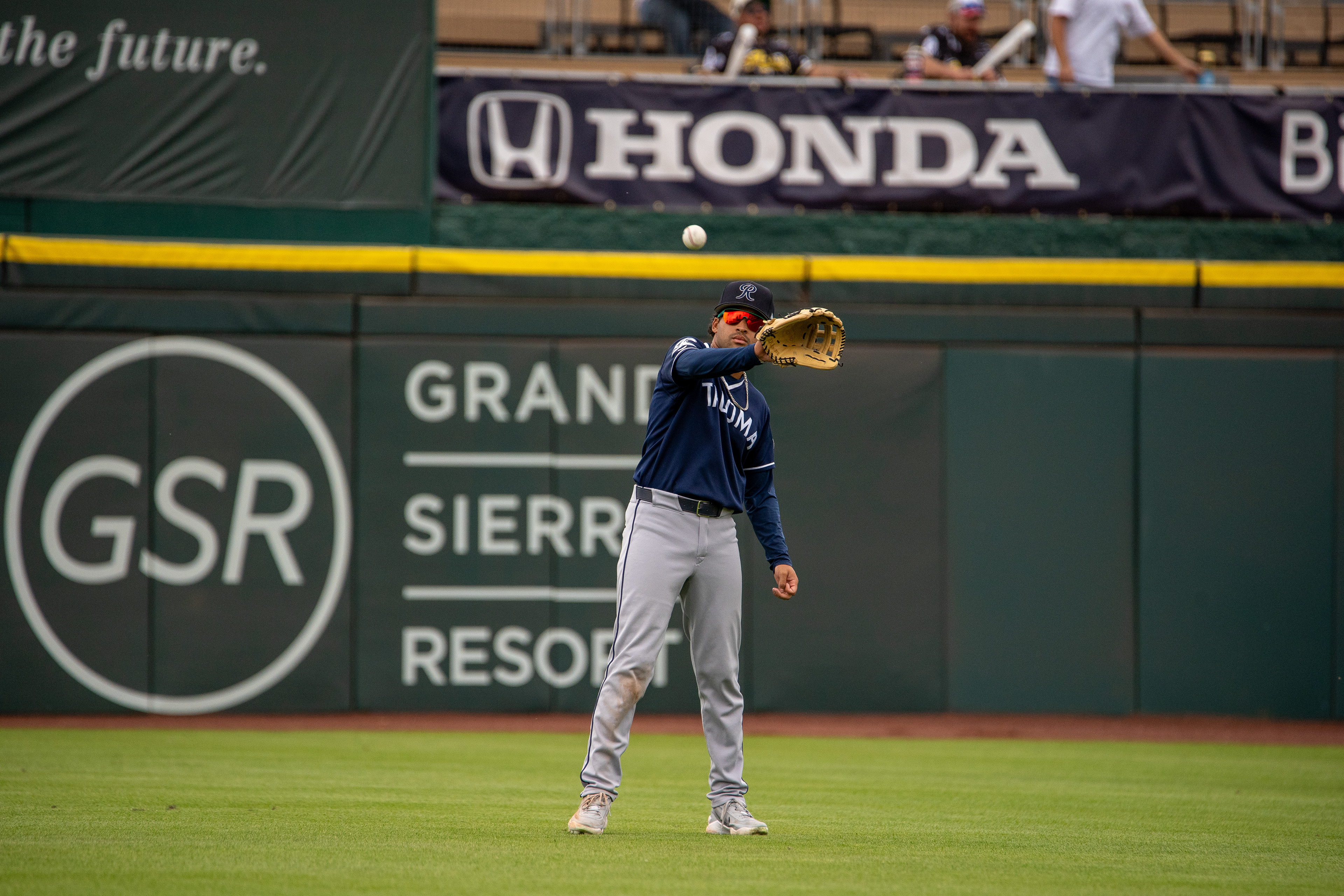The Tacoma Rainiers take the win 7–6 against the Reno Aces on March 27, 2026, during Opening Day at Greater Nevada Field in Reno.