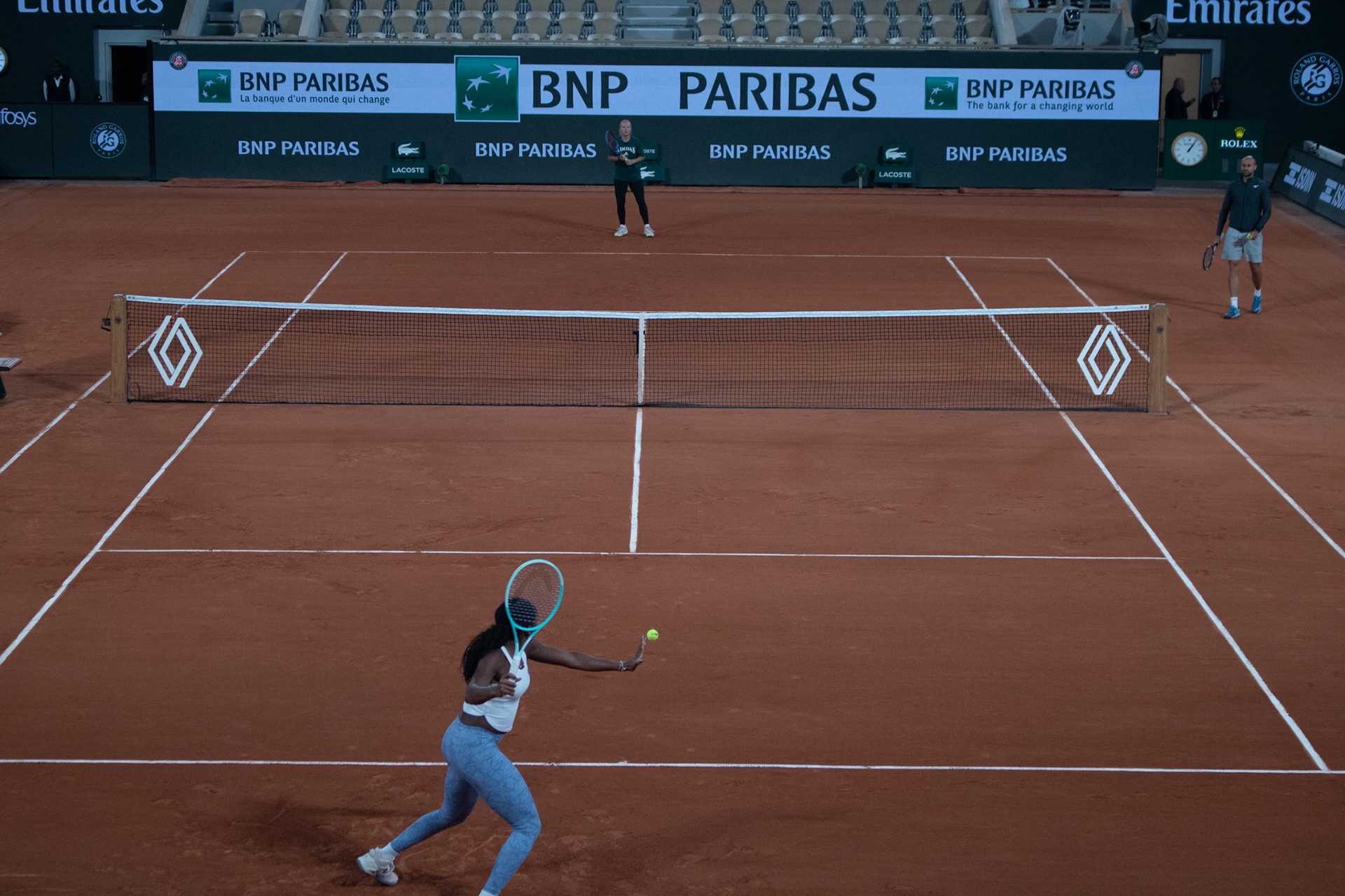Coco Guaff practicing at the French Open.