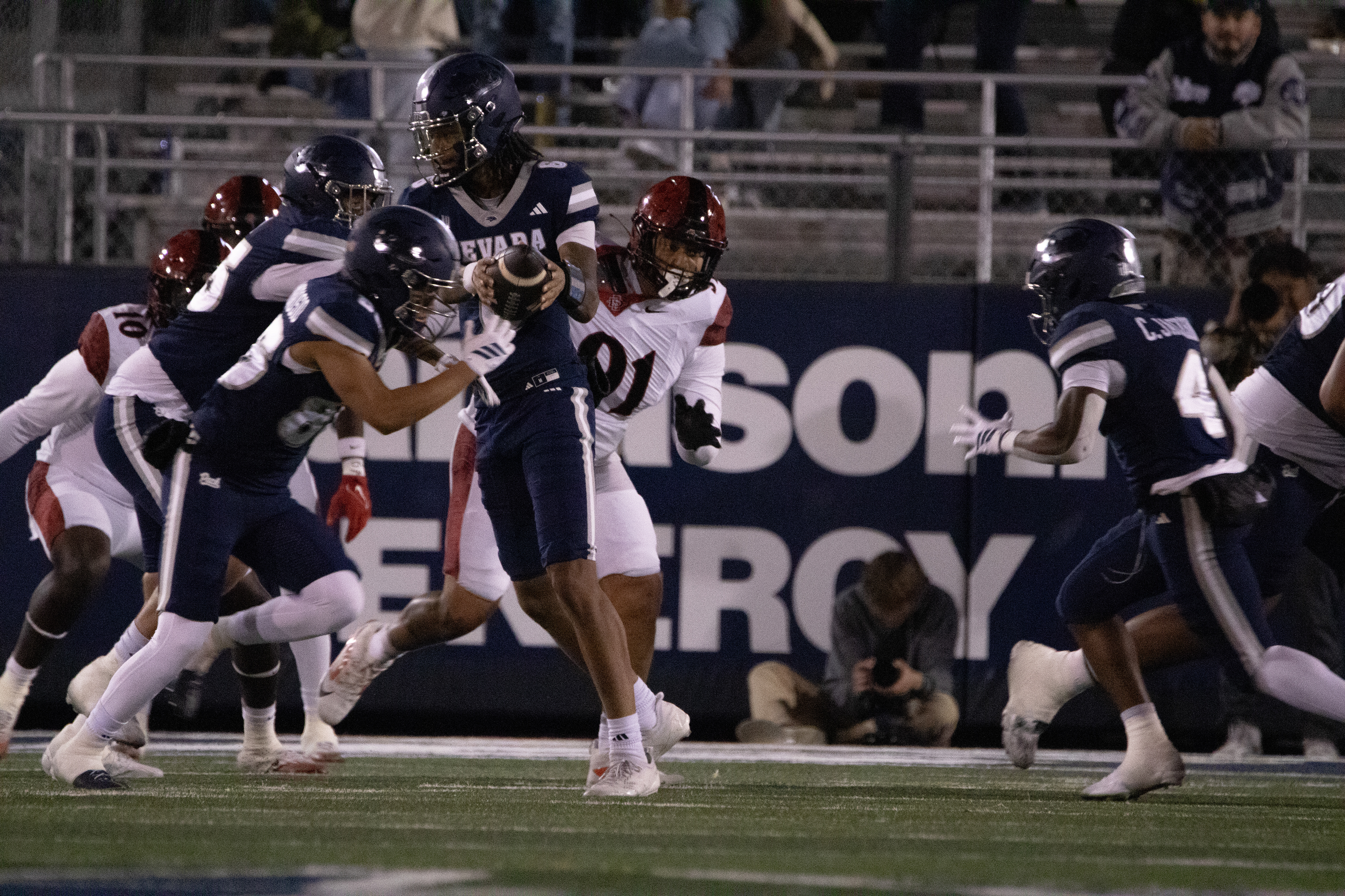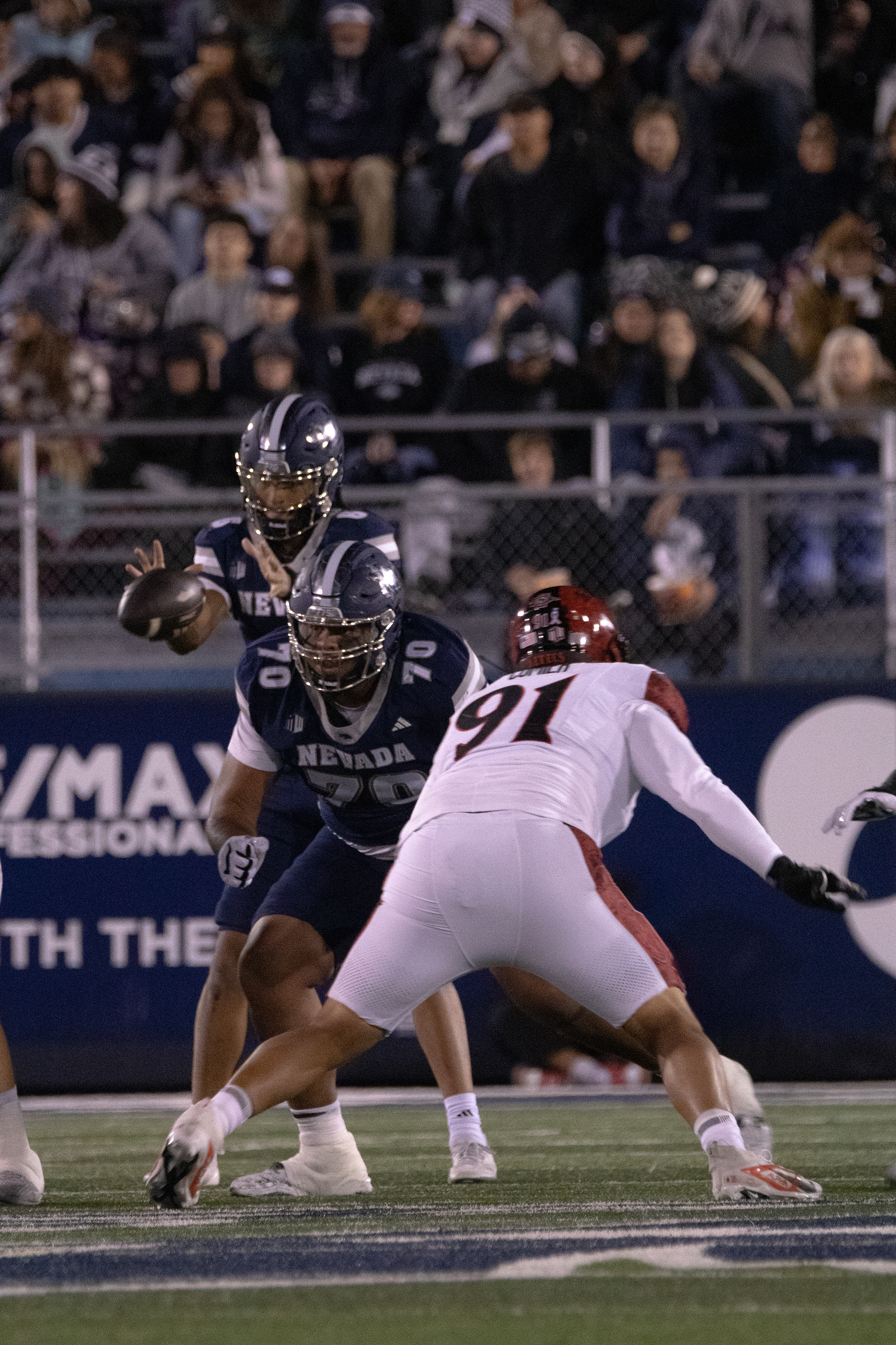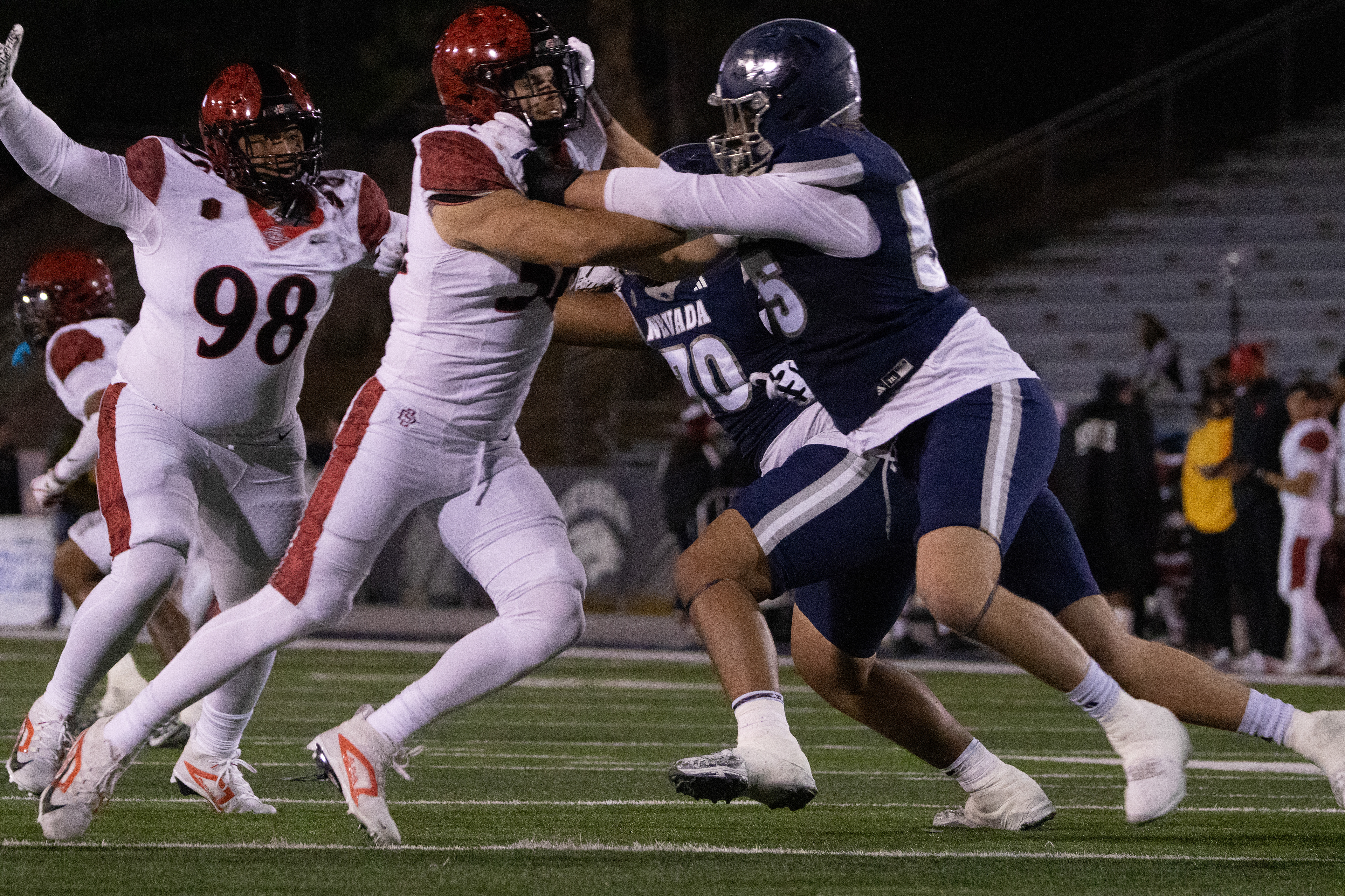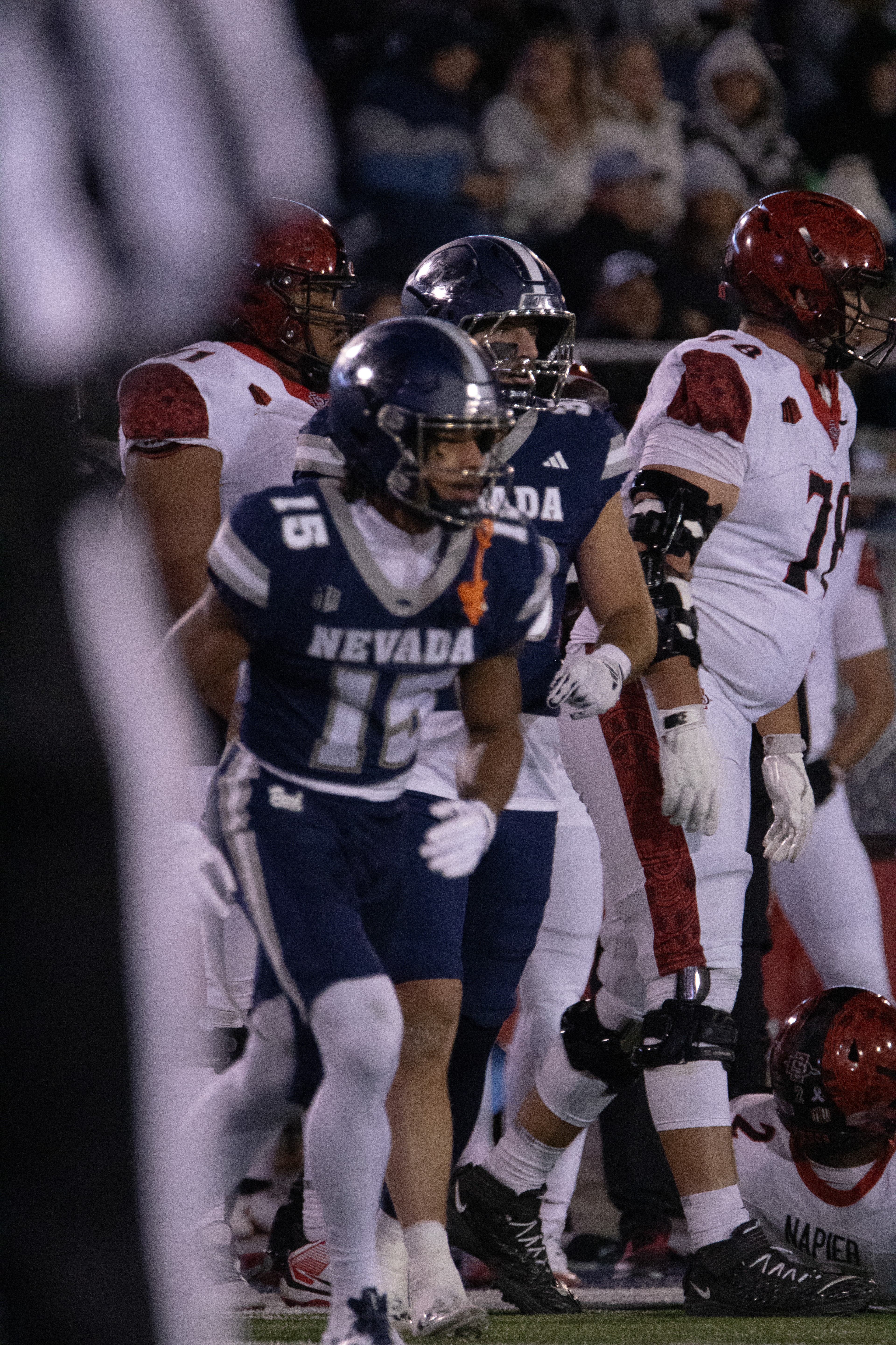 University of Nevada, Reno Wolf Pack against San Diego State on Saturday, Oct. 11, 2025, at Mackay Stadium. The Wolf Pack struggled to recover after an early deficit, San Diego won 44-10.